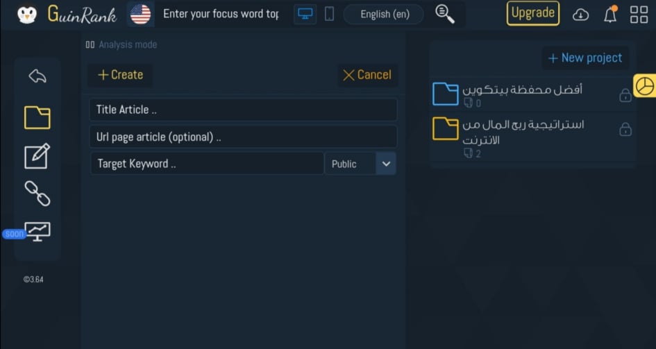 ضع اولا الكلمة المفتاحية المستهدفة ثم اضغط البحث . ستقوم الأداة بعرض قوة المنافسة و افضل سكور ثم تحقيقه من المواقع ( نصيحة :اجعل دائما سكور مقالك لا يقل عن 55 )